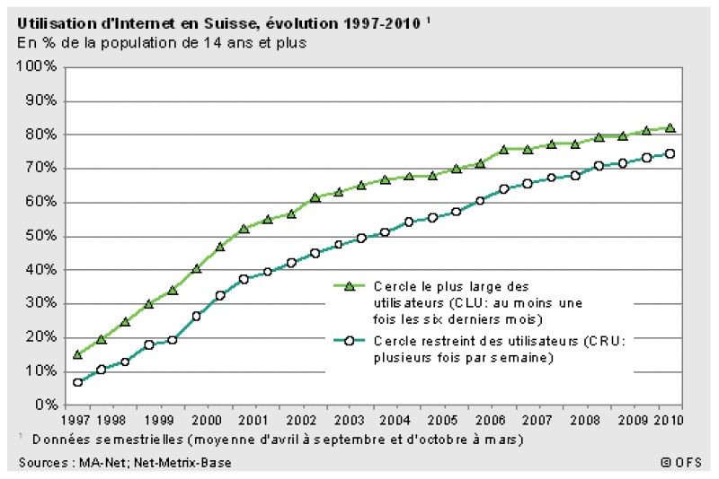 Use of the Internet in Switzerland, evolution 1997-2010