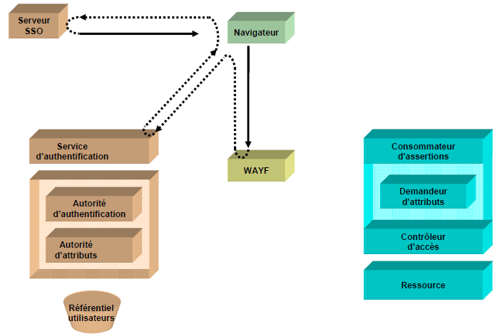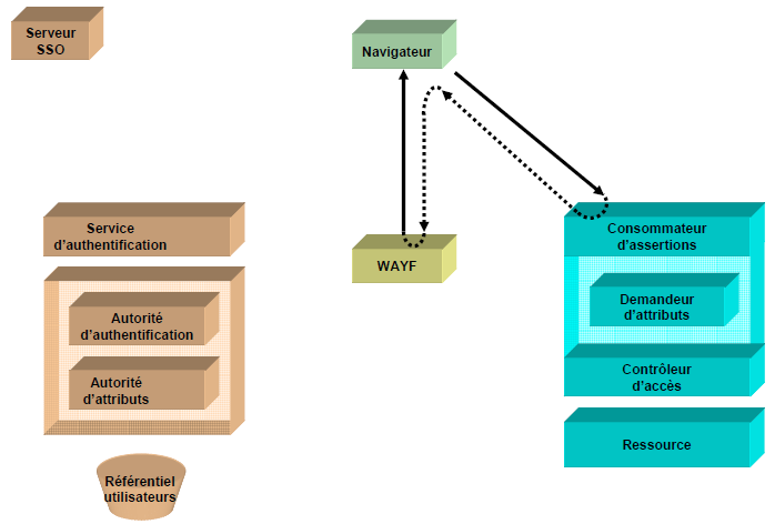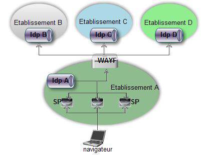 Le problème qui se pose alors est que le SP ne sait pas vers quel IdP rediriger le navigateur pour l’authentification. Il est résolu grâce au WAYF, dont le rôle est d’orienter les utilisateurs pour sélectionner leur IdP.