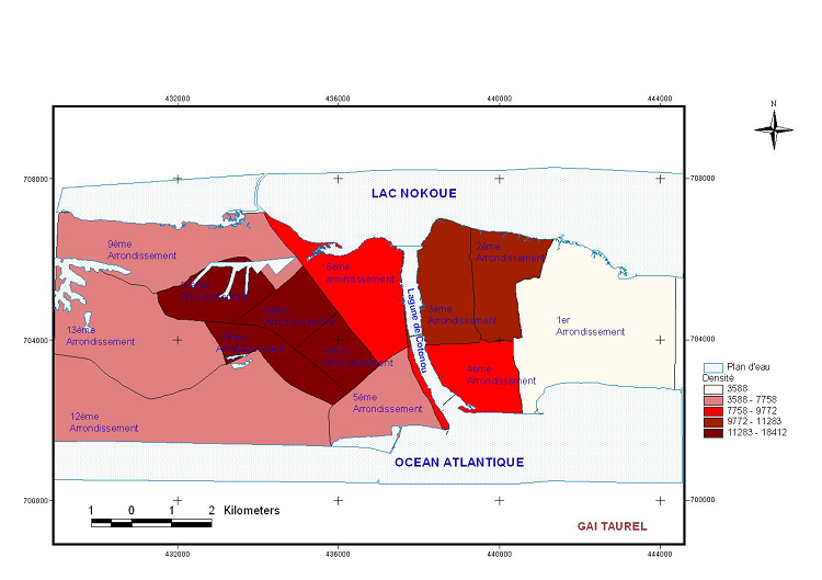 Figure 2.2 : Cartographie montrant la densité de la population dans la Ville de Cotonou