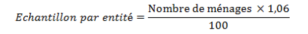 Les échantillons par quartier et par cellule ont été tirés de la manière suivante: nous avons effectué un rapport entre la taille de l’échantillon total (ET) et le nombre total de ménages (NM) de la commune d’Ibanda tel que présenté dans la formule suivante :