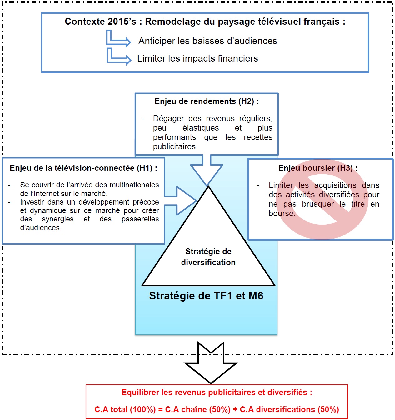 Ce dernier enjeu est en partie le fruit des précédents. Effectivement, l’impact financier qu’aura le remodelage du marché de la télévision française sera provoqué par la baisse des audiences qui engendrera des revenus publicitaires moindres. Ici se confirme une nouvelle fois l’attrait une politique de diversification.
