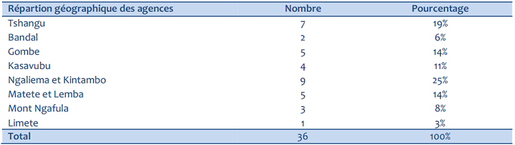 Tableau 8 : Répartition géographique des agences des ISFD sous étude