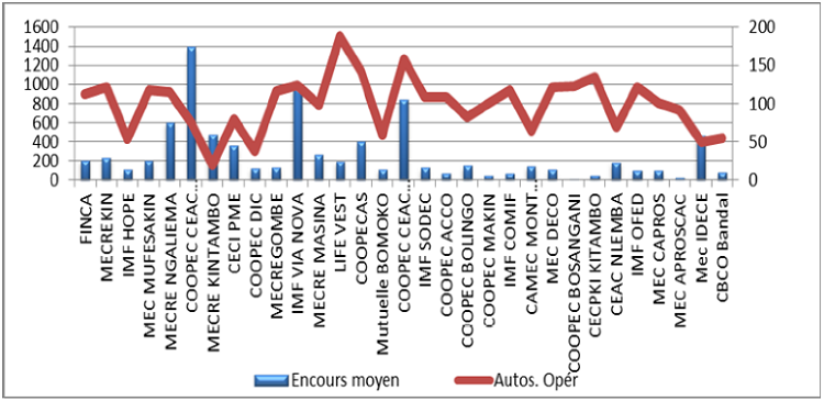 En effet, il existe des institutions avec des crédits moyen faibles mais affichant un bon ratio d’autosuffisance opérationnelle. Ceci conforte la thèse d’une éventuelle convergence entre l’autosuffisance opérationnelle et une grande portée sociale. Ceci nous conduit à présumer que les institutions moins performantes ne le sont pas à cause de l’arbitrage.