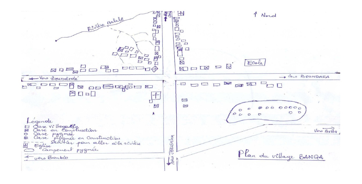 Le village d’étude est situé dans la commune de Lobaye dont le Chef lieu est NGOTTO où se trouve la grande forêt de Ngotto dans la sous-préfecture de Boda, en République Centrafricaine. Il est situé dans la partie Sud-Ouest du pays en zone de transition forêt dense humide et savanes et, a pour coordonnées : 04° 16,160’ Latitude Nord et 17° 33, 946’ Longitude Est-Ouest avec une altitude de 607 m (source : Données biophysiques de la zone d’intervention de PGTCV ,2005).