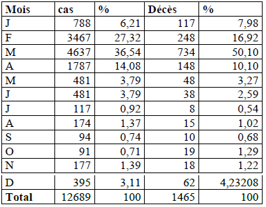 Le tableau ci-dessous présente la variation mensuelle de la méningite de 1990-2000.