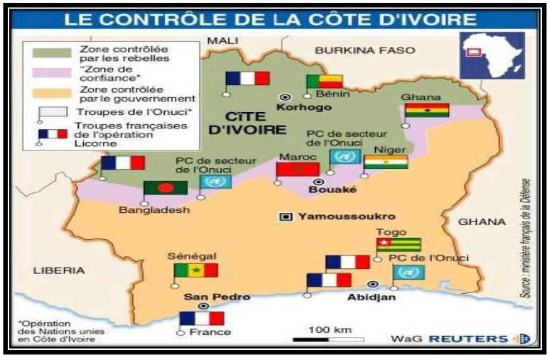 Depuis lors, trois grandes composantes armées sont en présence sur le territoire ivoirien : Il s‘agit
