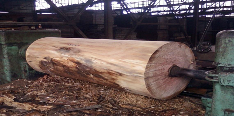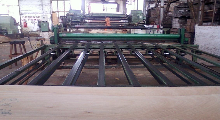Le déroulage est une opération qui consiste à dérouler une bille de longueur bien définie en placage continu d’épaisseur bien déterminée grâce à une machine appelée la dérouleuse.
