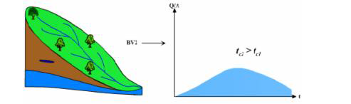 Un débit de pointe élevé et un temps de concentration à l’exutoire assez court. Bien souvent à l’origine des phénomènes les plus violents.