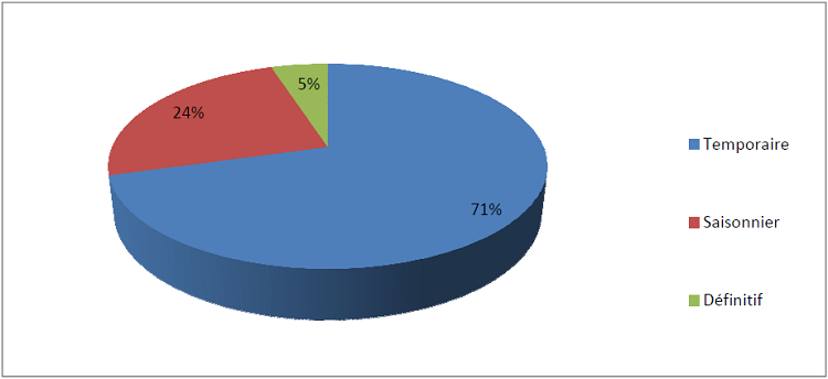 L’examen de la figure montre que 71 % des immigrants considèrent que la durée de leur séjour est temporaire. Pour ces immigrants, le milieu d’origine est le meilleur endroit pour vivre en toute quiétude. Dans cette catégorie, on retrouve les célibataires ainsi que des mariés ayant leurs familles au Nigeria.