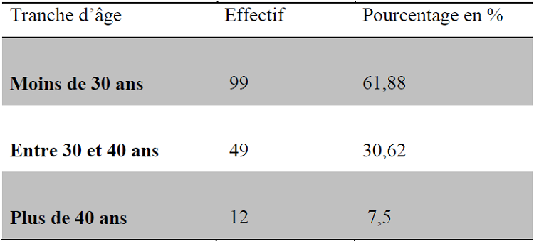 Selon les enquêtes de terrain, on distingue trois tranches d’âge (tableau III).
