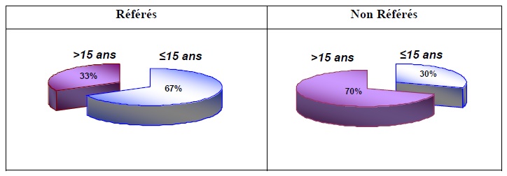 La répartition selon la tranche d’âge nous révèle bien que 67% des référés sont des enfants d’âges ≤ 15 ans.