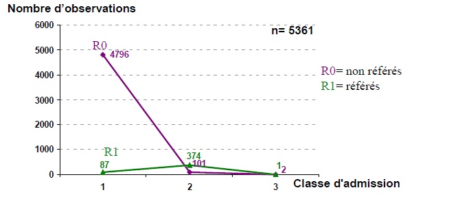 Le taux des référés selon la classe d’admission est représenté par la figure 82 et le tableau XIX.