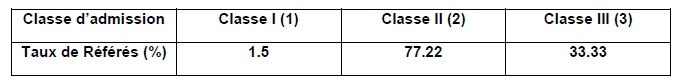 Tableau XIX: Taux de référés spécifique à chaque classe d’admission