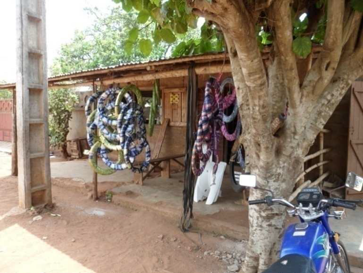 La vente de pièces détachées et de pneumatiques occupe 46 % des immigrants enquêtés, c’est l’activité la plus pratiquée par cette communauté. Les spécialistes du secteur sont les Ibos venant de l’Etat d’ Enugu. Pour commercialiser les différentes pièces, ils louent des boutiques (Photo1 et 2) où ils les stockent leurs marchandises. La boutique est ouverte tous les jours de 7h à 21 h. Les produits vendus sont à la fois original, contrefait ou usagé. Le prix des articles varie en fonction de la qualité et de la disponibilité sur le marché. Les articles qu’on retrouve chez ces immigrés sont : les pièces détachées et de pneumatiques pour les bicyclettes, les moulins, les motos, les autos, ainsi que des chambres à air et pneus pour les bicyclettes, les motos et les autos. On retrouve des pièces de motos de toutes marques.