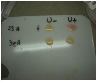 Figure n°16 : Test rapide à l’urée (photo prise au laboratoire de bactériologie, de l’EPH Bologhine Ibn Ziri).