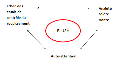 Selon Antoine Pelissolo, un psychologue : « Le rougissement se trouve au carrefour de trois systèmes : le système nerveux autonome, les émotions et l’attention. […] Mais le rougissement peut être également déclenché par les deux autres systèmes, les émotions et l’attention. Les liens sont naturellement évidents entre le rougissement et des émotions comme la honte, la colère, la peur, le plaisir, etc. Les rapports entre le rougissement et attention sont moins évidents et pourtant essentiels. La plupart des éreutophobes disent qu’une des circonstances dans lesquelles ils rougissent le plus souvent est l’effet de surprise. […]Il s’agit alors d’une réaction d’hyperattention brutale, qui met en action tous les éléments du système nerveux autonome car notre cerveau a détecté, en un éclair sans que nous ayons eu le temps d’analyser la situation, une menace potentielle » (22). Les trois systèmes dont parle le docteur Pelissolo serait situés dans la même région du cerveau, à une très moindre distance et partageant les mêmes neurotransmetteurs. Il pourrait alors se produire comme il le décrit, un court-circuit.
