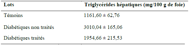 Tableau IX : Quantité des triglycérides hépatiques (mg/100g de foie) des rats des 3 lots.