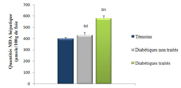 (Test de Student: ns p > 0.05, Diabétiques non traité vs témoin ; ns p > 0.05, diabétiques non traités vs diabétiques traités)