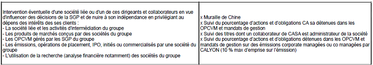 Tableau 29 : Extrait de la politique de prévention et de gestion des conflits d’intérêts d’Amundi