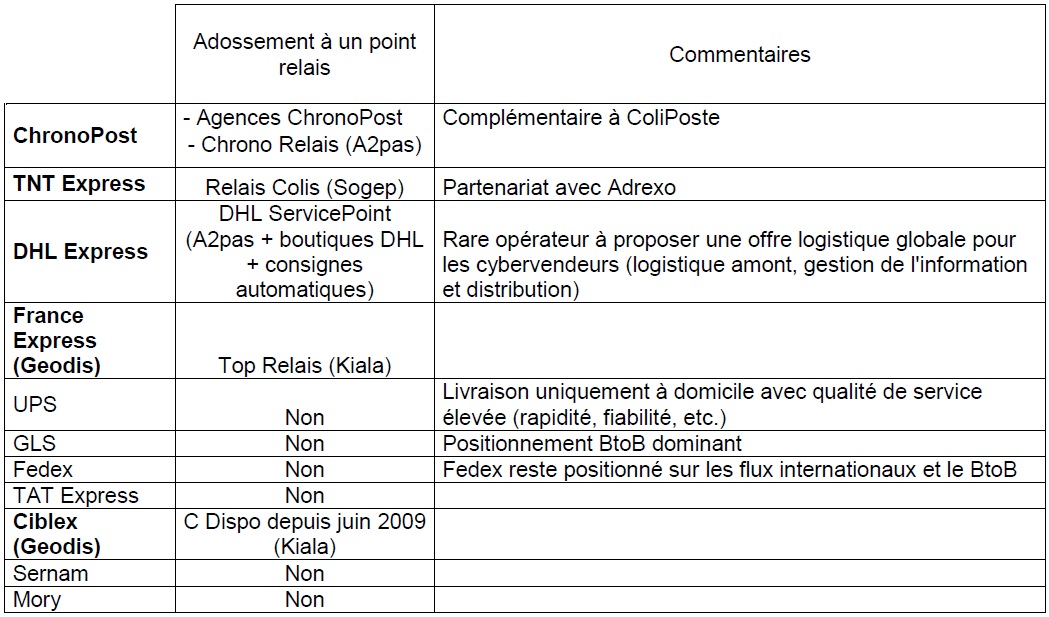 Tableau 6. Les transporteurs express qui s’adossent sur un réseau de points relais