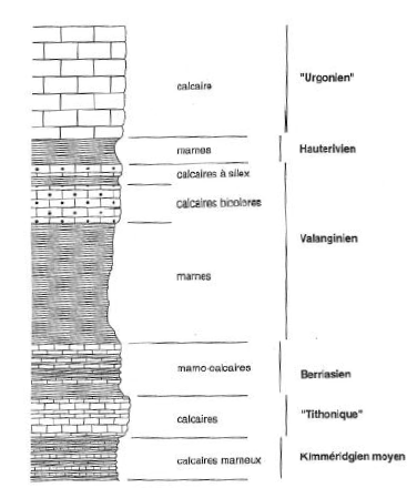 Enfin, il faut noter que tous les auteurs signalent une répartition des blocs de calcaires valanginiens en amont, et des blocs de calcaires urgoniens en aval.