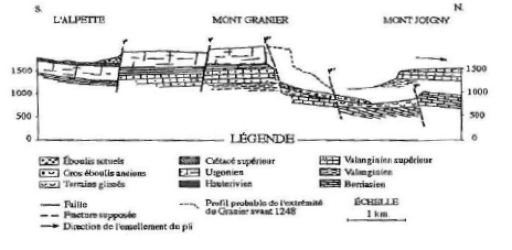 25 « […] à un vaste glissement de marnes à la base du Granier sous le poids des falaises calcaires qui les surmontaient.»(Donze & Pachoud, 1998, p. 30)