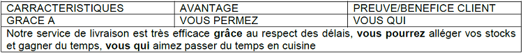 Préparer un bon argumentaire voir un argumentaire sur mesure permet aussi d’aborder une visite plus sereinement. Dans mon cas, j’utilisais mes feuilles de route par branche d’activité. Elles étaient en lien direct avec les produits qu’utilisaient les clients. J’ai aussi conçu un argumentaire pour le service de livraison. Yves Lellouche nous conseille d’utiliser la méthode CAB. L’ors de l’argumentation nous avons tendances à utiliser des expressions tel que : « c’est un produit de qualité ». Il s’agit d’affirmations sans preuve. Elles risquent de provoquer un certain scepticisme. Après tout, la concurrence peut très bien en dire autant. Pour sortir de ces banalités, il faut apporter des preuves. L’avantage de cette méthode est quelle est facile à énoncer leur d’un entretien.