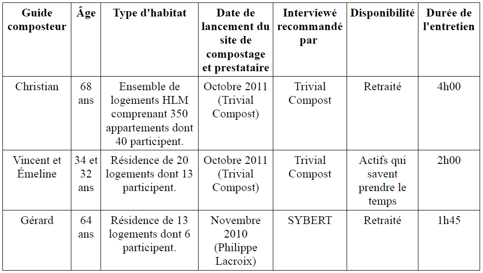 certains guides composteurs. En effet, certains interviewés (Christian(17), Vincent et Émeline)