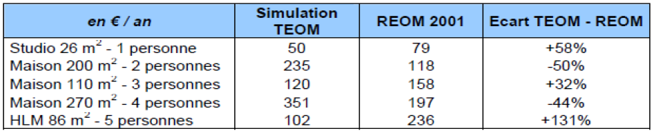 Tableau 1 : Simulation du changement de tarification avec le passage de la TEOM à la REOM dans le Syndicat Mixte à