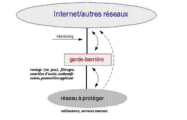 Dans certains sites on place les serveurs liés aux services Internet dans une « zone démilitarisée » (DMZ), les accès en provenance d’Internet ne peuvent voir que ces machines et les utilisateurs de l’entreprise doivent passer par les machines de la DMZ pour accéder à Internet.