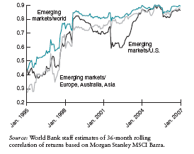 Figure 4 : Évolution de la corrélation des marchés émergents à travers le temps