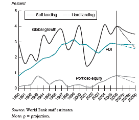 La figure 3 démontre à coté du volume grandissant des flux de capitaux sous forme d’action, un autre aspect de ces mouvements qui est leur variabilité a travers le temps. En effet, ces flux étaient assez dérisoires vers la période de 1990-1992 puis, ils ont pris du volume durant la période de 1992-1997 suite aux différentes mesures réglementaires et institutionnelles prises par la majorité des pays à l’occasion des Rounds de l’Organisation Mondiale du Commerce (OMC). Par la suite, c’est la période des vaches maigres causées essentiellement par les crises successives au Sud-Est Asiatique, l’Amérique Latine et la crise de la Russie sans oublier l’effet du 11 Septembre 2001 qui a prolongé la faiblesse des flux des capitaux au niveau mondial.