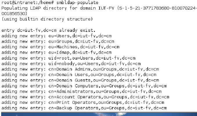Voici le résultat de la création d’un arbre de base au sein de l’annuaire LDAP du contrôleur de domaine SAMBA pour la centralisation de l’authentification.