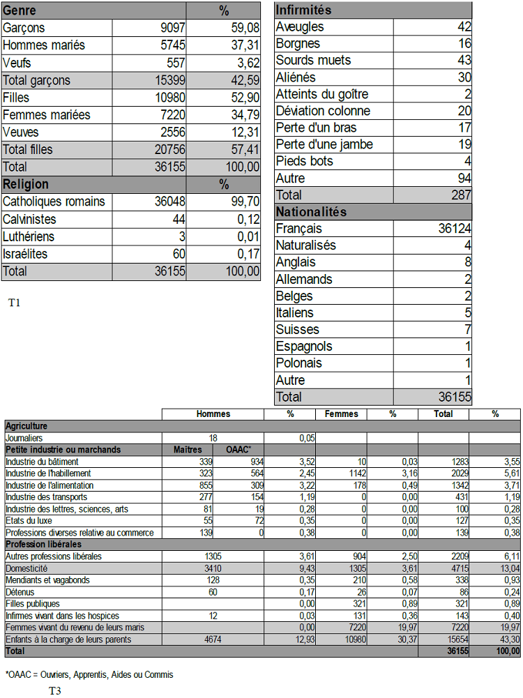 127 Pourcentages calculés à partir du recensement de 1851, ibid. cote 1F7
