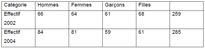 Entre la période de 2002 à2004, nous avons constaté une augmentation de 26 personnes soit une croissance de 9 personnes par an.