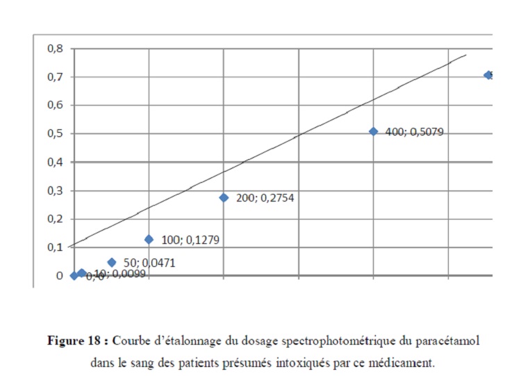 Le dosage spectrophotométrique du paracétamol a été effectué et sur le sang du patient