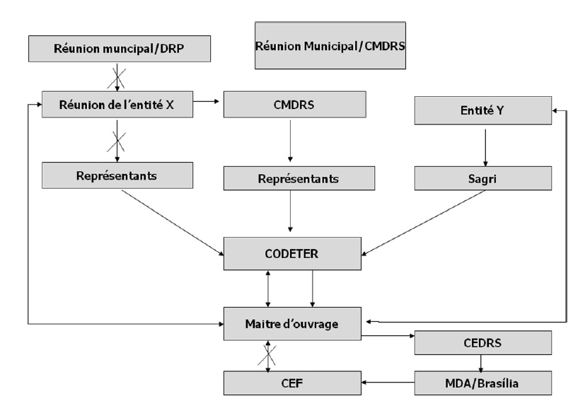 Après 2008, avec le Codeter, le processus de construction des demandes a évolué grâce à l’élaboration d’axes stratégiques concrétisés par les Arrangements productifs locaux (APL). L’organisation de réunions municipales rassemblant les acteurs principaux de la municipalité, en l’absence de Conseil Municipaux de Développement Rural Durable (composé de manière paritaire de la société civile et des institutions publiques est censé institutionnaliser ces réunions) a été favorisée par le Codeter et par le Sagri pour définir les APL. Ainsi, trois ou quatre APL par municipalité ont été définis. À partir de ces premières propositions, les organismes de la société civile (souvent les syndicats) devaient organiser des réunions avec leur associés pour préciser les actions concrètes à mettre en place pour renforcer ces APL. Cette étape n’a, la plupart du temps, pas été réalisée. Des diagnostics participatifs rapides pourraient être très intéressants, à ce stade, pour relever les besoins réels.