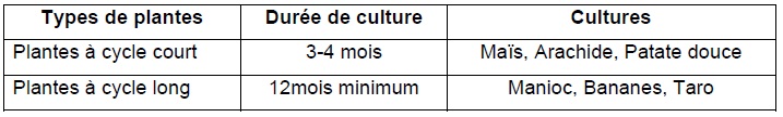 Tableau 8 : Récapitulatif de types de plantes cultivées
