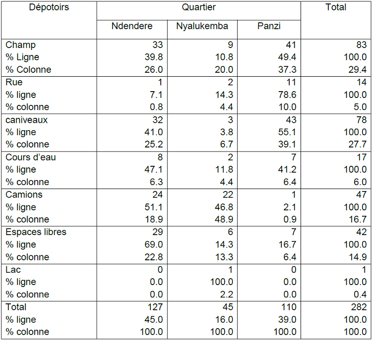 Les dépotoirs tels que conçus par la population de la commune d’Ibanda sont repris dans le tableau ci-dessous :