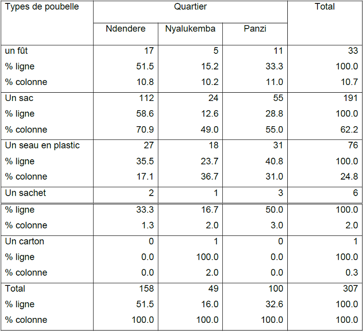 La nature des poubelles dans les quartiers est reprise dans le tableau ci-dessous :