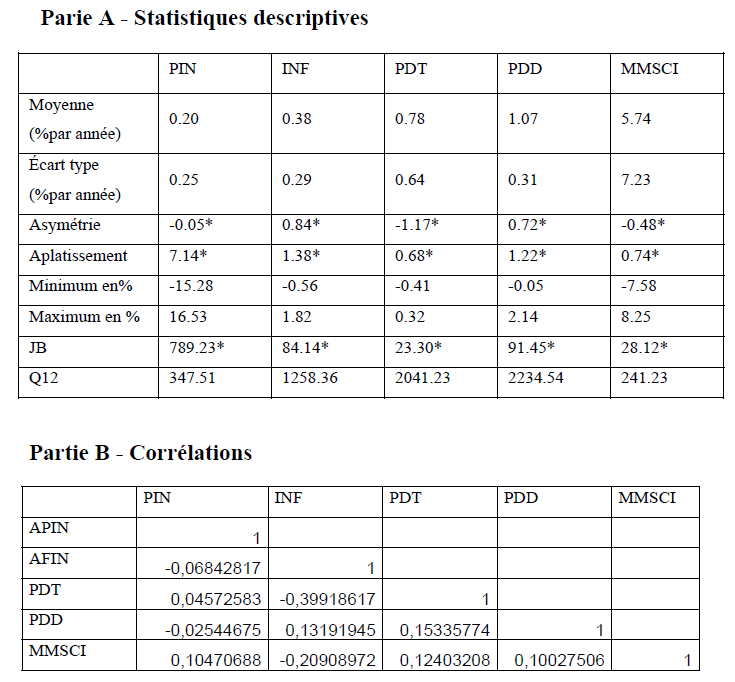 Tableau 8 : Statistiques descriptives et corrélations des variables économiques