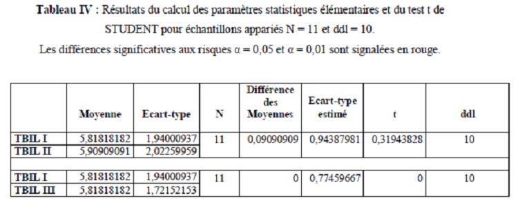 Les résultats auxquels nous sommes parvenus (Tableau IV), indiquent qu’il n’existe