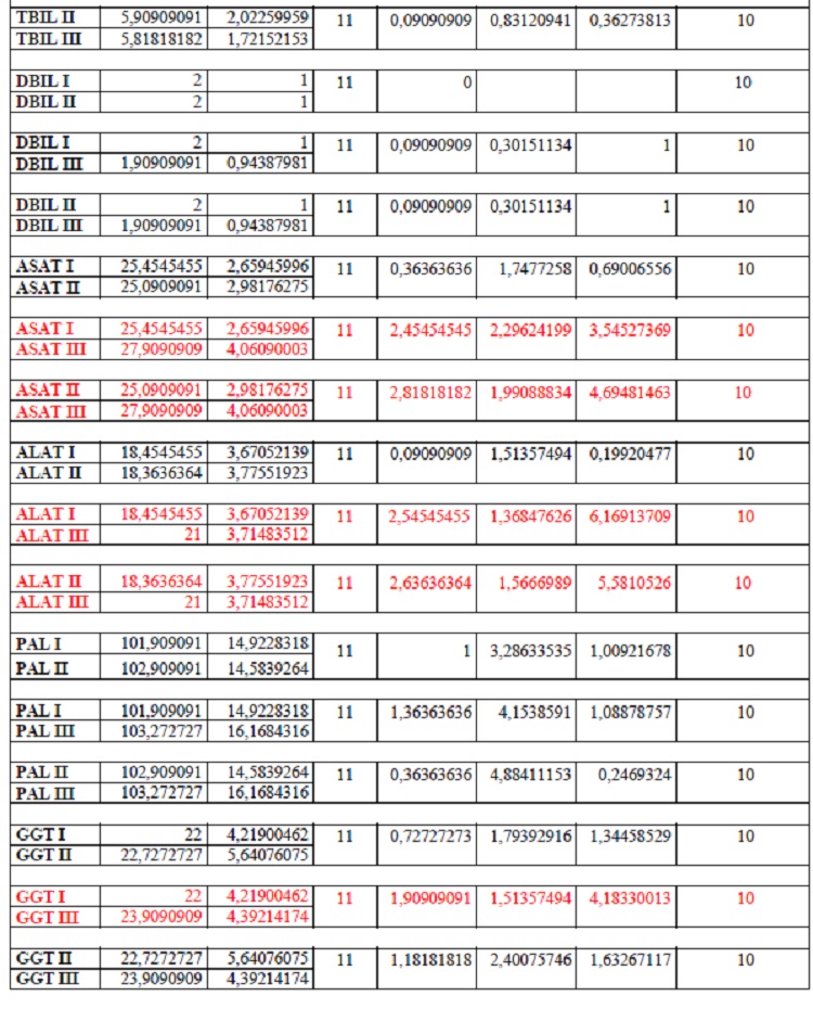 taux d’ALAT, et dix individus sur 11 pour les taux de GGT, nous avons enregistré une
