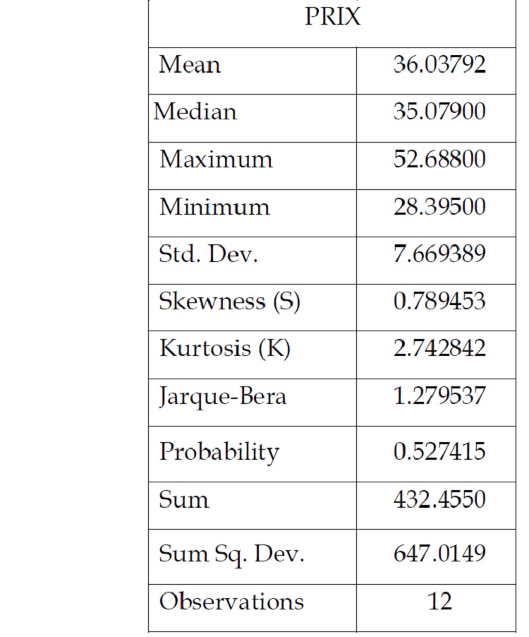 Tableau 1 .1 : Statistiques descriptives de la série des prix
