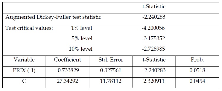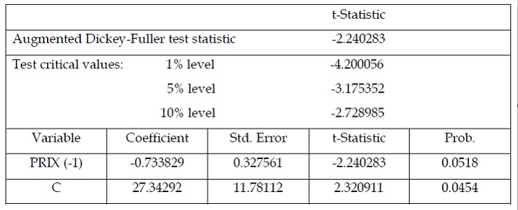 prix, fait ressortir la présence d’une racine unitaire dans la série en niveau, donc la série est