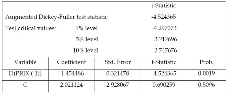 Il en découle du tableau 1.5 que la série des prix est stationnaire en différence