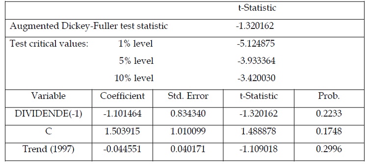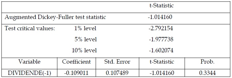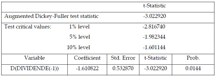 Il en découle de ce tableau que la série des dividendes est stationnaire en différence