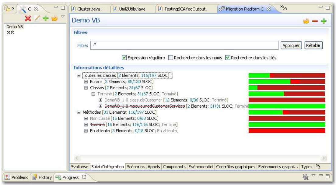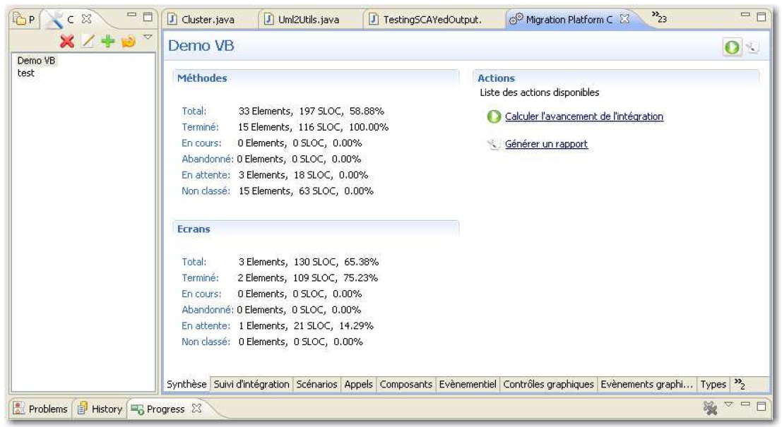 Figure 30 : Vue du suivi d’intégration du plugin Eclipse (source Sodifrance)