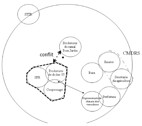 Il n’existe pas encore d’espace de discussion permettant le développement de la filière. Le CMDRS qui pourrait jouer ce rôle, ne l’a jusqu’à maintenant pas fait. Ce conseil regroupe en réalité principalement le secrétaire municipal de l’agriculture, l’Emater et des présidents de communautés, mais ils ne représentent qu’une part très limitée des communautés et ne constituent pas de réelles forces de propositions. Beaucoup d’acteurs importants ne participent pas ou peu au CMDRS comme le STTR, la BASA, la Coopecuagri,…. Ainsi, il est fondamental de renforcer le CMDRS pour qu’il intègre les acteurs locaux réels pouvant donner une impulsion au développement de la municipalité. Ce conseil pourrait alors constituer un espace de discussion sur l’APL lait. Il serait cependant nécessaire, au-delà des membres désignés du CMDRS, de convier d’autres acteurs sur des sujets spécifiques.