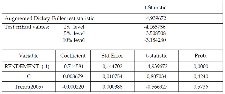 Tableau 3.1: test de stationnarité de la série des rendements mensuels du marché : modèle